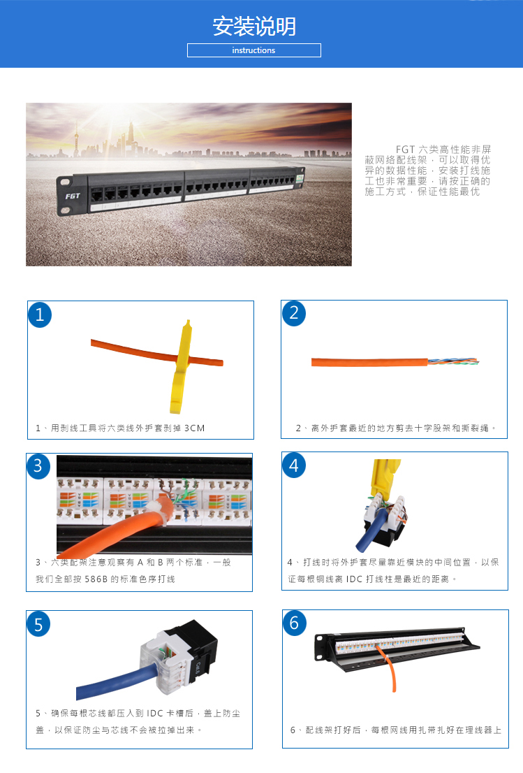 FGT 24口超六類非屏蔽網絡配線架該產品執行標準:YD/T 926.3、ISO/IEC 11801 、ANSI/TIA-568.2-D、IEC 60603-7-41。支持話音通訊系統、10Base – T、16 Mbps 、100Base – T、155Mbps和622 Mbps ATM 、1000 Mbps、多媒體等方面的高速應用。